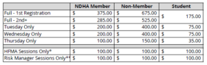 * If you are a member of HFMA and you only want to attend the three HFMA specific sessions, the registration fee is $100 per person. This fee includes all materials for each session as well as continuing education, however it does not include meals.